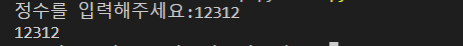 sel이라는 변수에 인트형이 들어가는데 전에 "정수를 입력해주세요"라는 글을 보여준다.