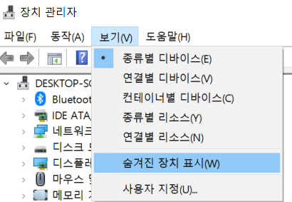 4. 장치관리자에서 해당 드라이버 업그레이드 및 삭제