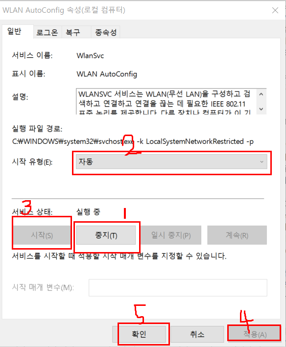 WLAN AutoConfig, WWLAN AutoConfig를 오른쪽 마우스를 눌러 속성 클릭
