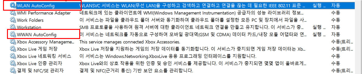 WLAN AutoConfig, WWLAN AutoConfig 둘 다해줍니다.