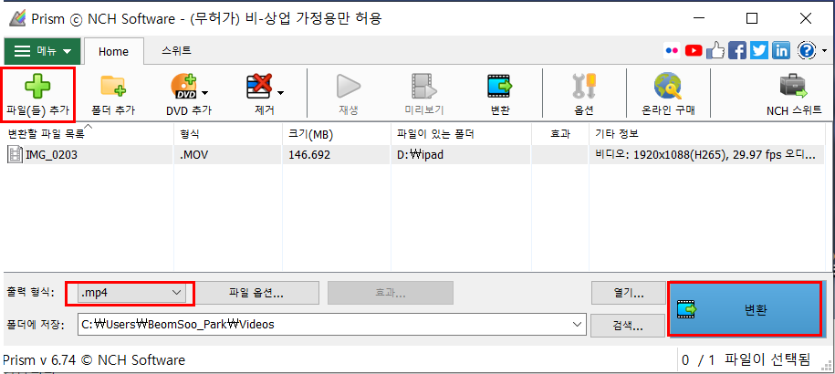 윈도우는 mov파일을 지원하지 않나 mp4로 변환해보겠습니다.
