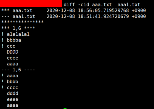 diff 명령어는 differences의 약자로 두 파일 사이의 내용 비교를 하기 위한 명령어