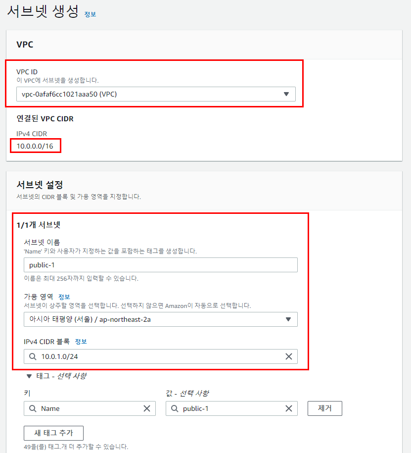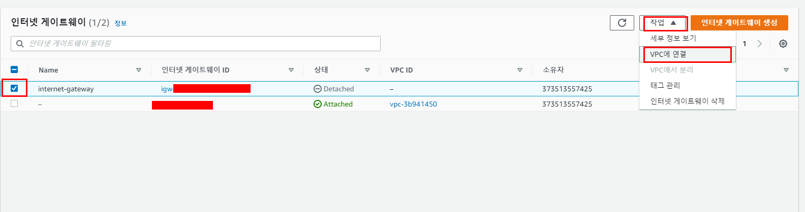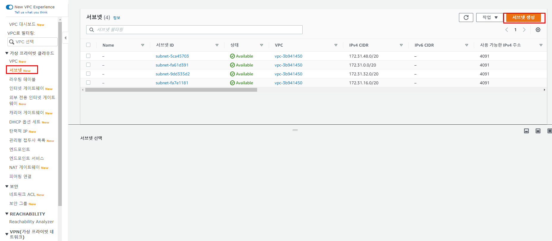 위처럼 VPC- 가용영역을 나워 서브넷을 만들고 인터넷게이트웨이까지 실습해보았습니다.
