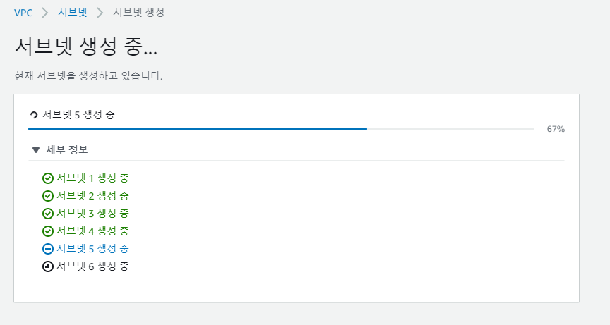 VPC 1개에 가용영역2개, 각 가용영역에 서브넷 3개 씩
