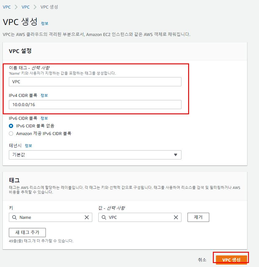 VPC는 논리적으로 분리되어있고 IP 주소 범위와 VPC범위를 설정해야하며 서브넷이 VPC에 생성이 됩니다.