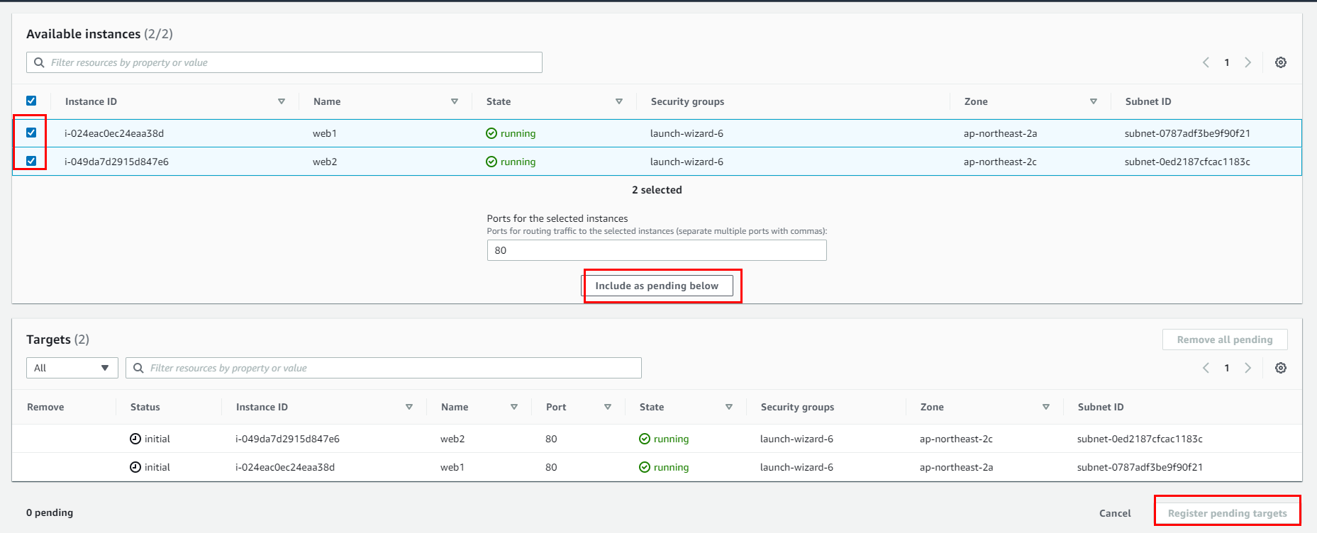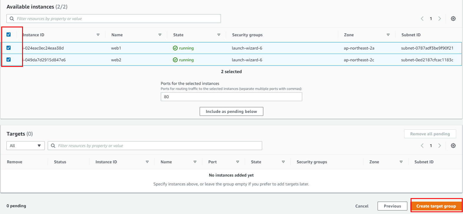 ** 대상 그룹에 어떤 인스턴스를 넣으지 설정하지 않아 설정 방법 추가 // 2.2번의 사진에 인스턴스를 선택하고 include 누르면 됩니다.