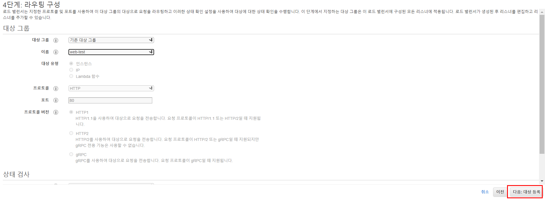 2.5. 라우팅 구성에 (위에서 생성한 대상그룹)