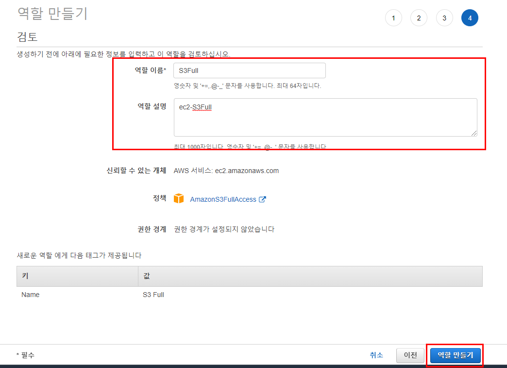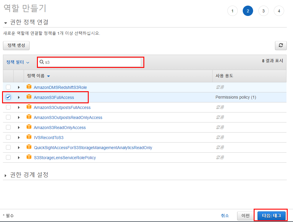 1.3. S3에 대한 룰 체크( S3에 어플리케이션을 넣어 EC2에 불러오기 위해 )