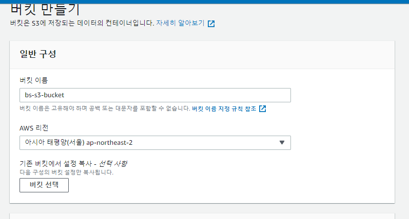 2.2. 버킷 생성 (해당 이름으로 생성이 되지 않아 변경)