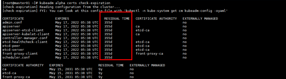 1년이 지나면 kubectl 명령어가 안 되며 이는 kubelet 로그에 만료