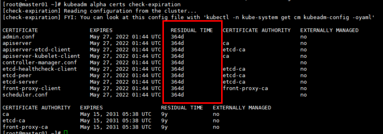 쿠버네티스 클러스터 인증서의 기간은 1년입니다.