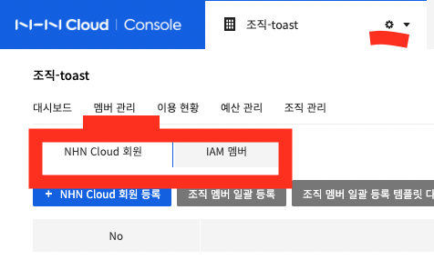 IAM 맴버 : NHN Cloud의 회원이 아닌지만 조직/프로젝트에 접속가능한 계정