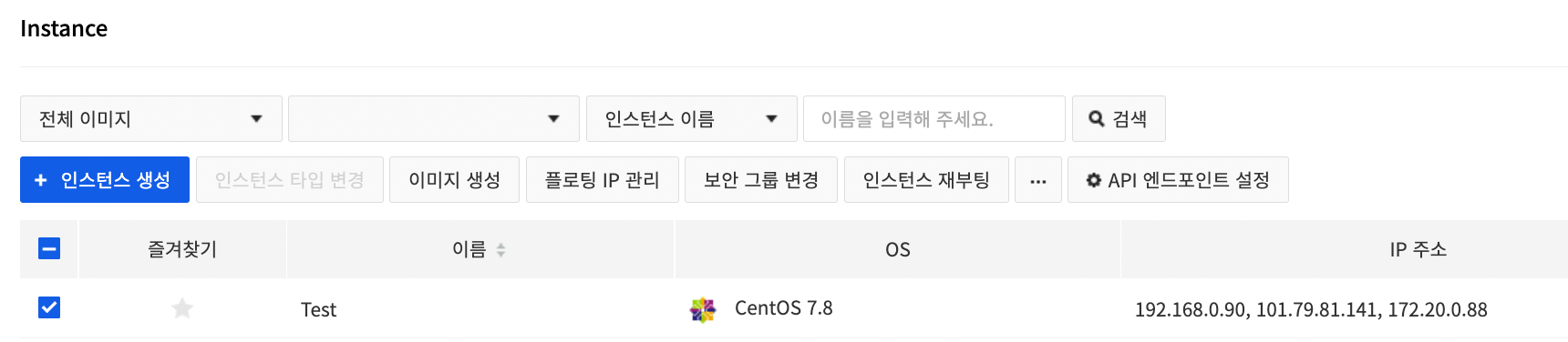 Compute > Instance > Instance 생성 - 기존 퍼블릭과 동일하지만 하단의 네트워크 설정
