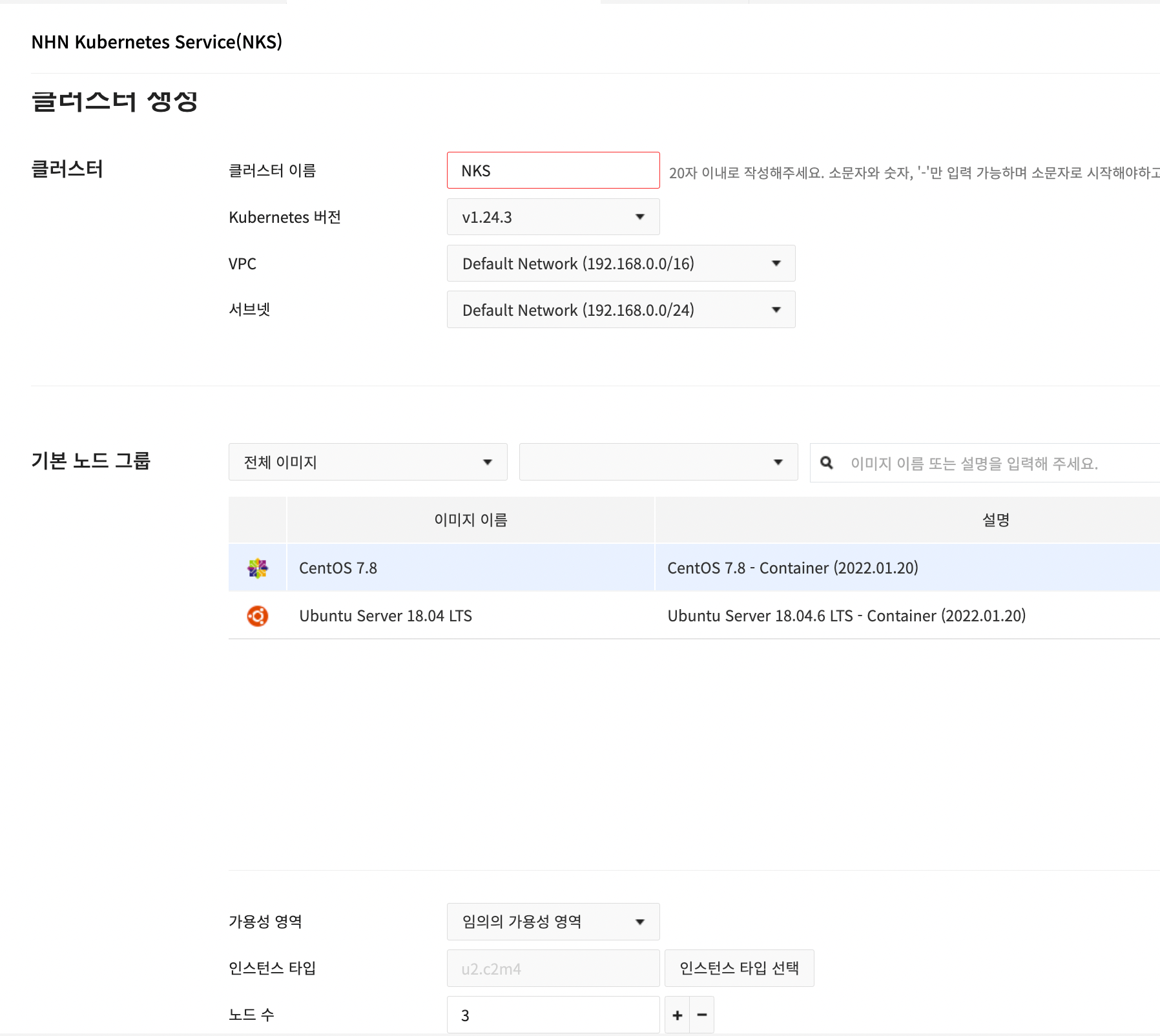 따라서 사용자 subnet을 이 대역과 겹치게 설정하면 NKS 클러스터가 정상 동작할 수 없습니다.