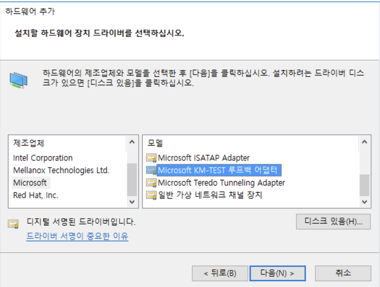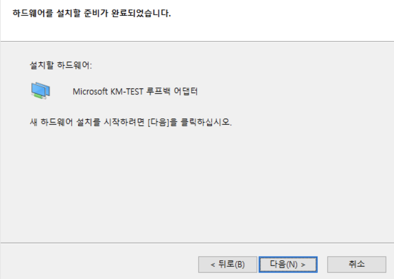 장치관리자에서 2개의 루프백 디바이스를 생성합니다.