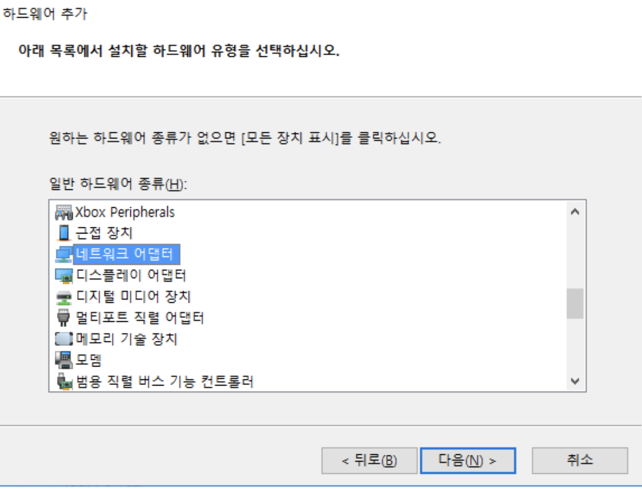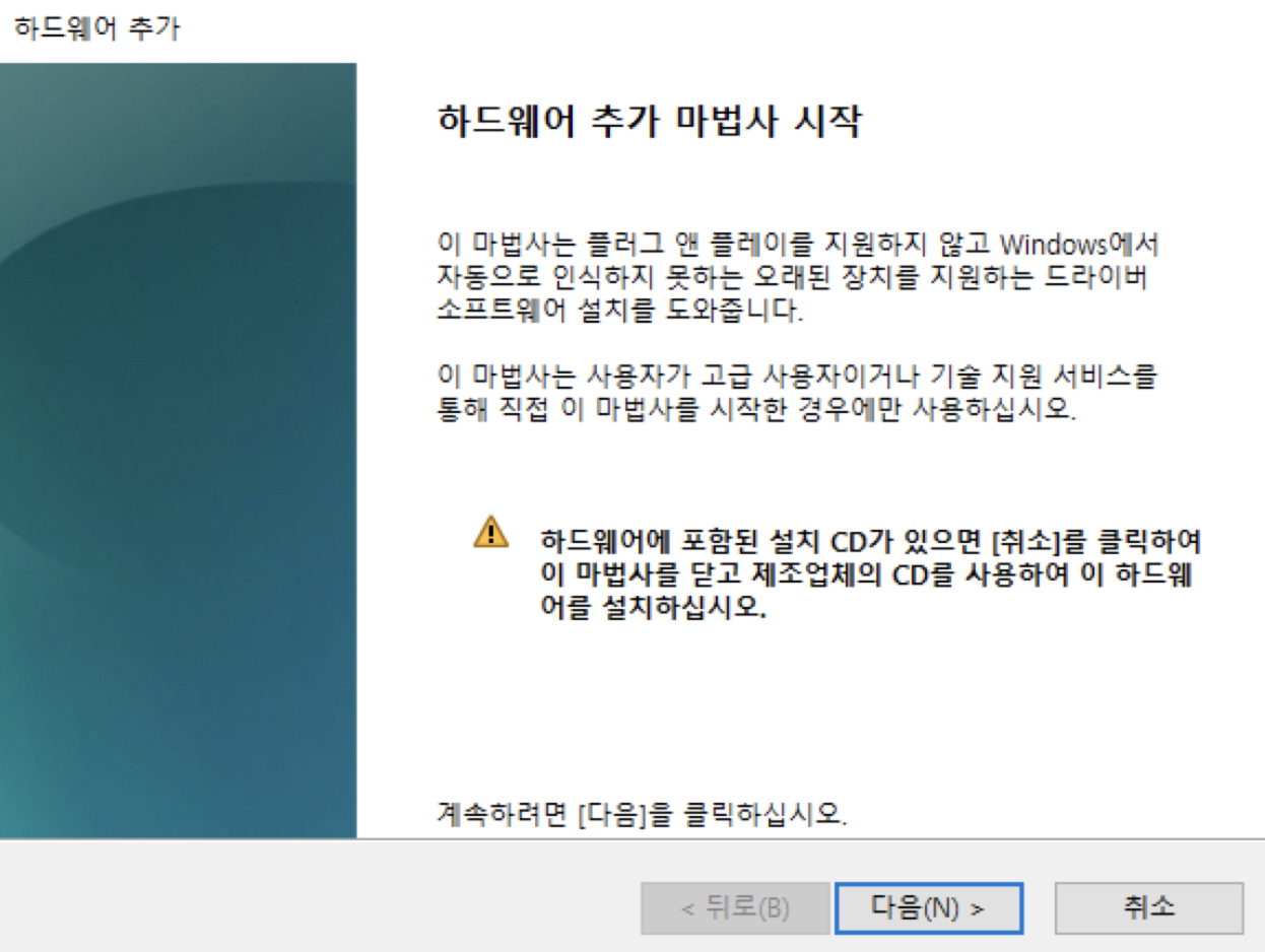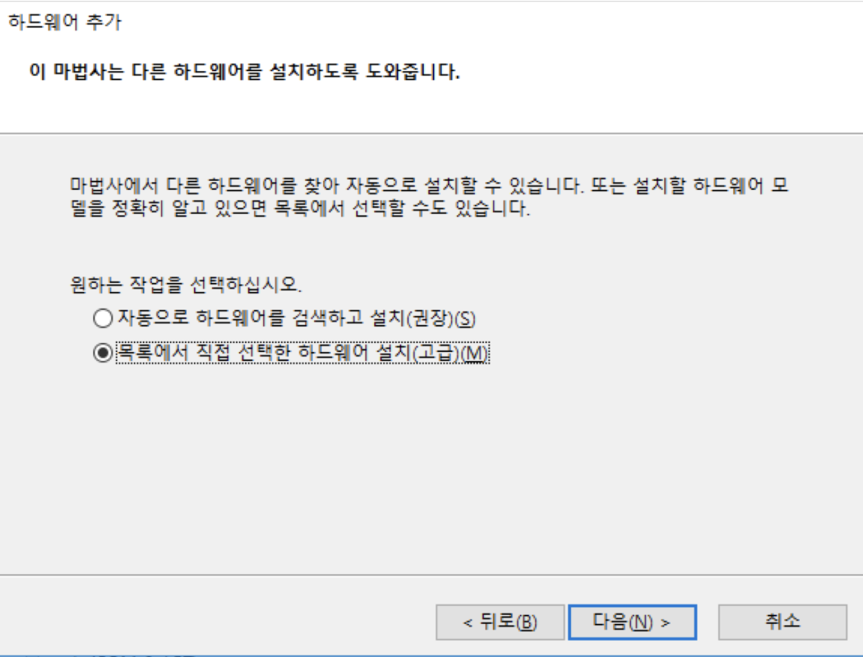 동작 > 레거시 하드웨어 추가