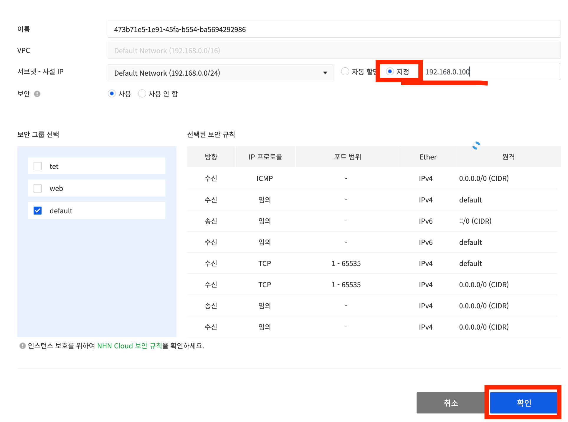 이렇게 간단하게 변경을 할 수 있으니 생성 시 고정아이피를 위해 API는 사용 안하는 걸로 합니다 .,.,.