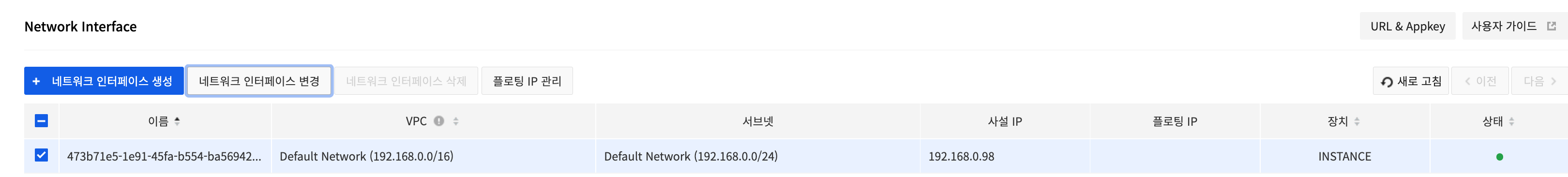 NHN Cloud에서 고정 아이피( Network > Network Interface)를 만들어 인스턴스 생성 시 Subnet이 1개만 할당할 수 있다. 생성 시 인스턴스에 서브넷 /고정 아이피는 API 를 사용하여 진행해야한다. 토큰발급받