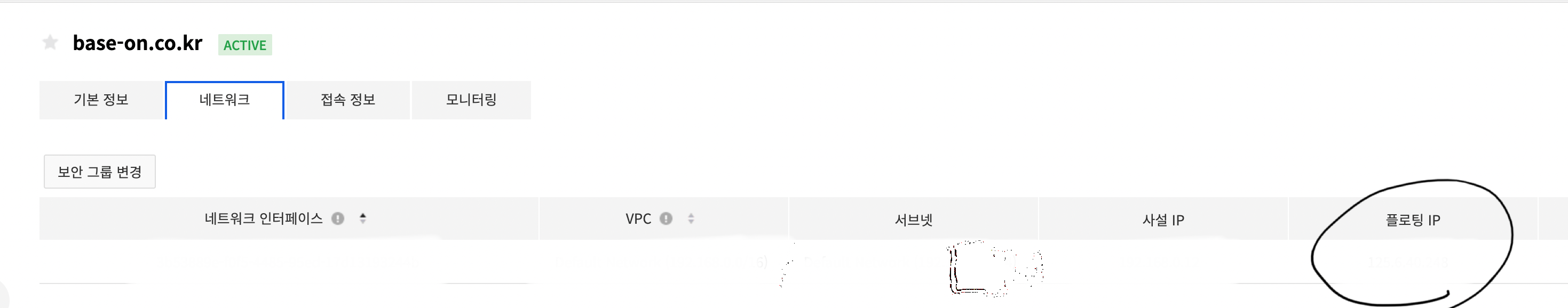 NHN Cloud - 인스턴스를 눌러 확인 가능 > 하단 네트워크
