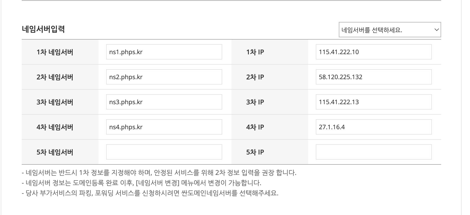도메인 주소 (1,2,3,4,5차를 도메인 구매한 사이트에 등록해줘야한다.)