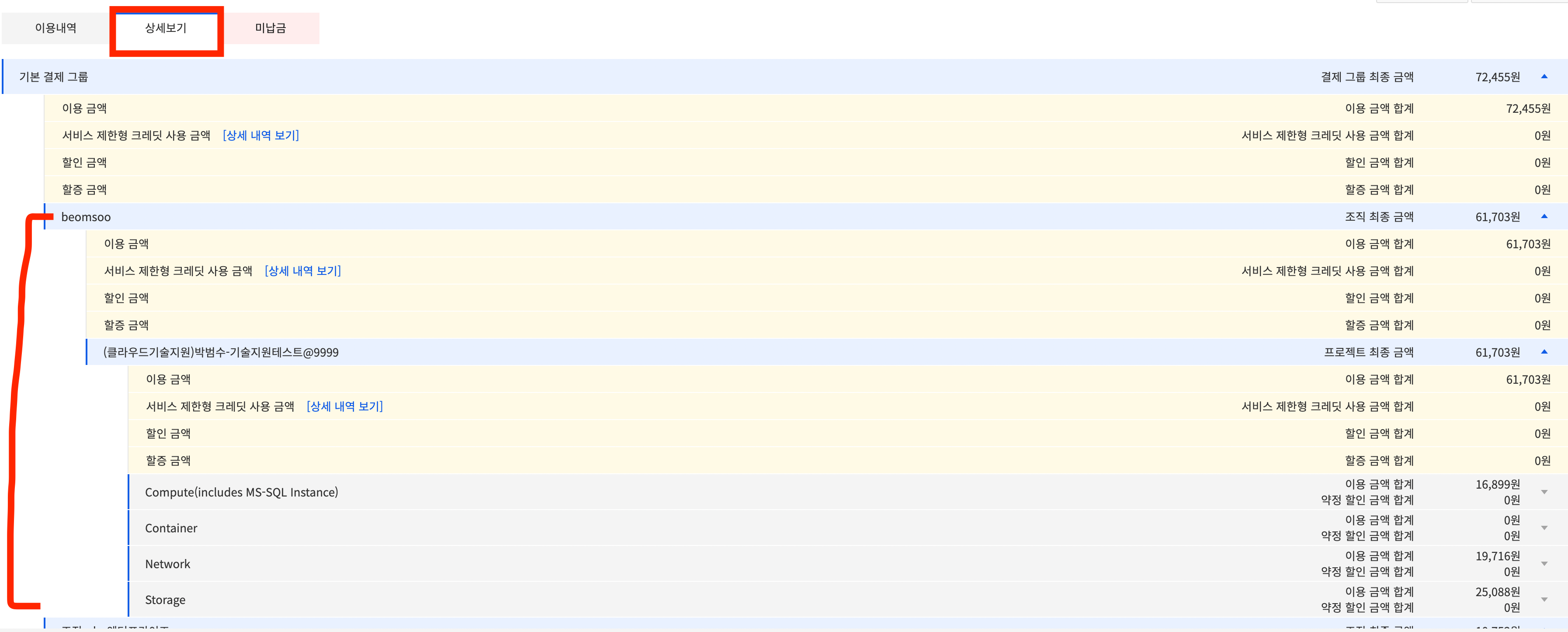 로그인하여 하기와 같이 결제 내역 확인 / 해당 리소스 삭제 부탁드립니다.