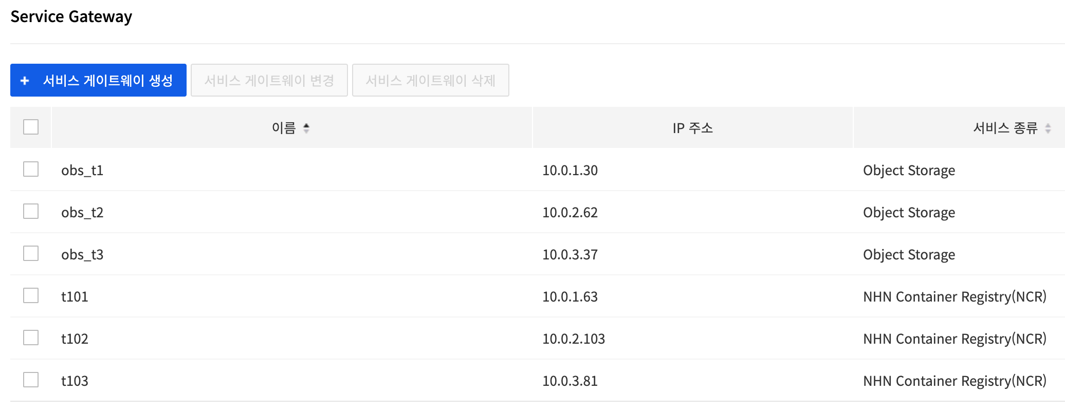 VPC내 Subnet끼리 통신할 수 있게 Service Gateway를 설정하여 하나의 NCR로 다중 서브넷에서 연결할 수 있도록 해보겠습니다.