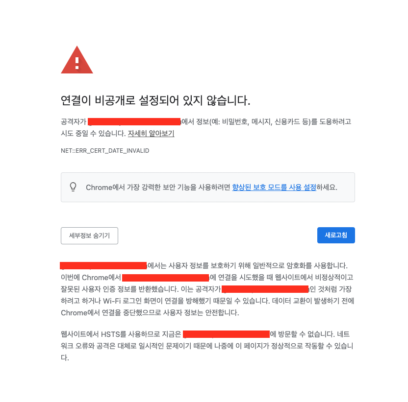 NET::ERR_CERT_DATE_INVALID 문제가 발생