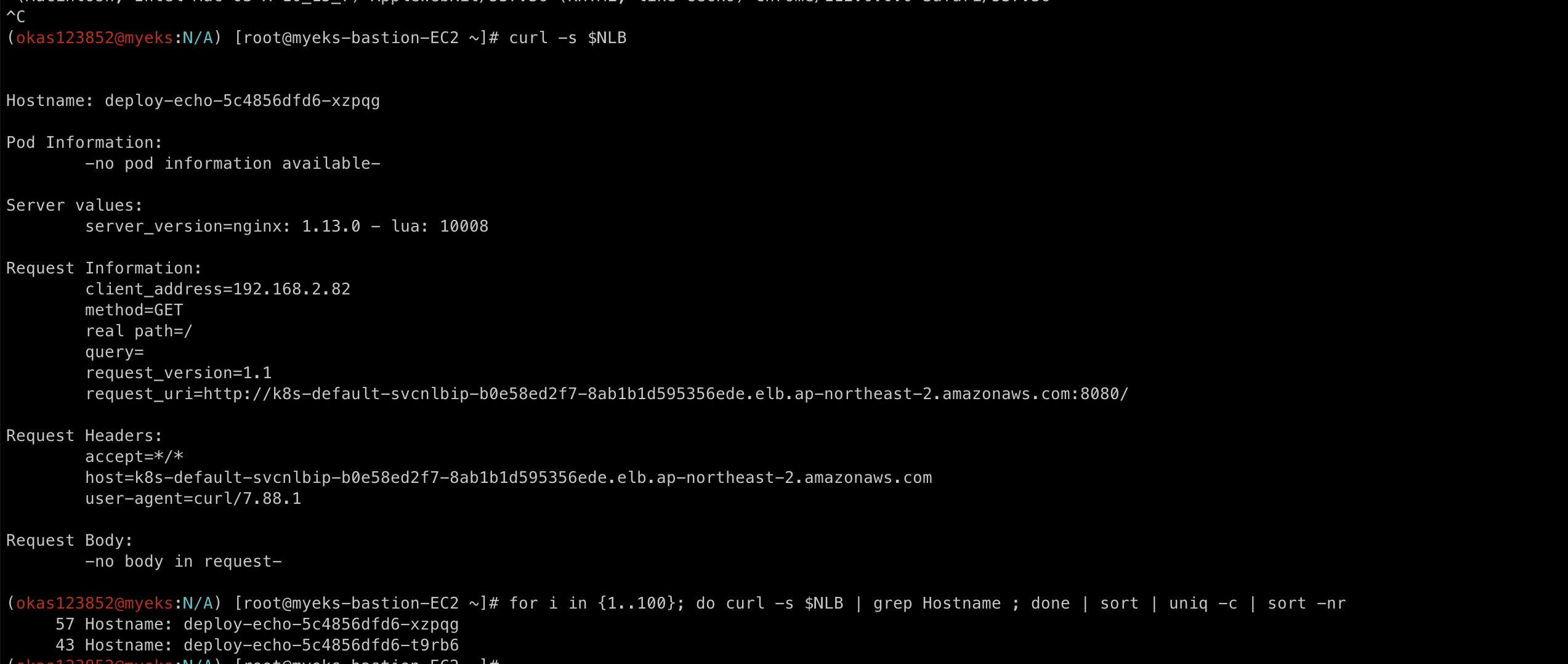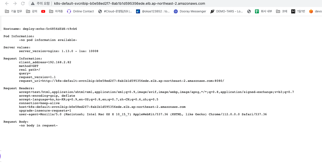 - 외부 클라이언트 IP 보존(유지) : AWS NLB 는 타켓이 인스턴스일 경우 클라이언트 IP를 유지, iptables 룰 경우도 externalTrafficPolicy 로 클라이언트 IP를 보존