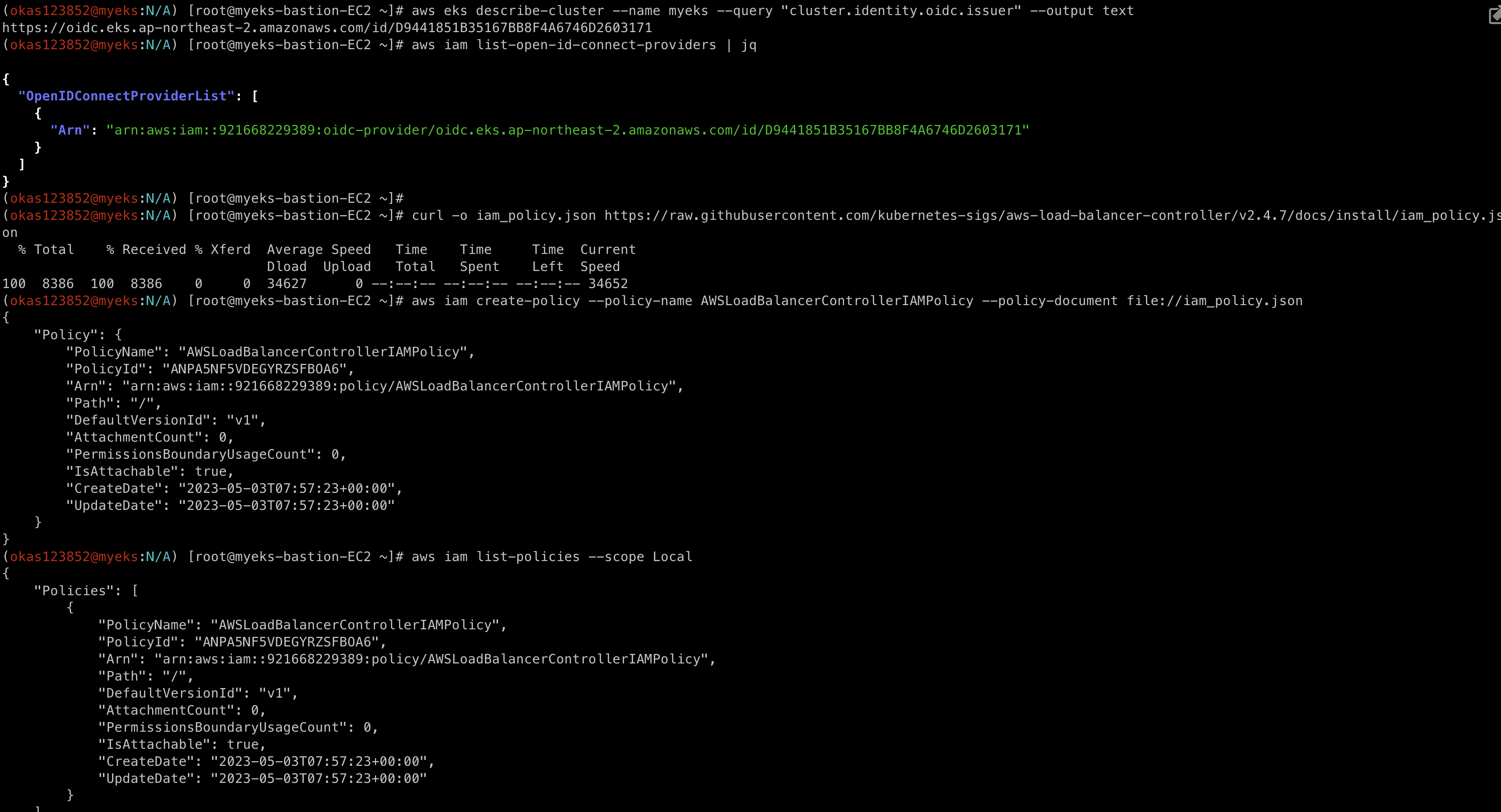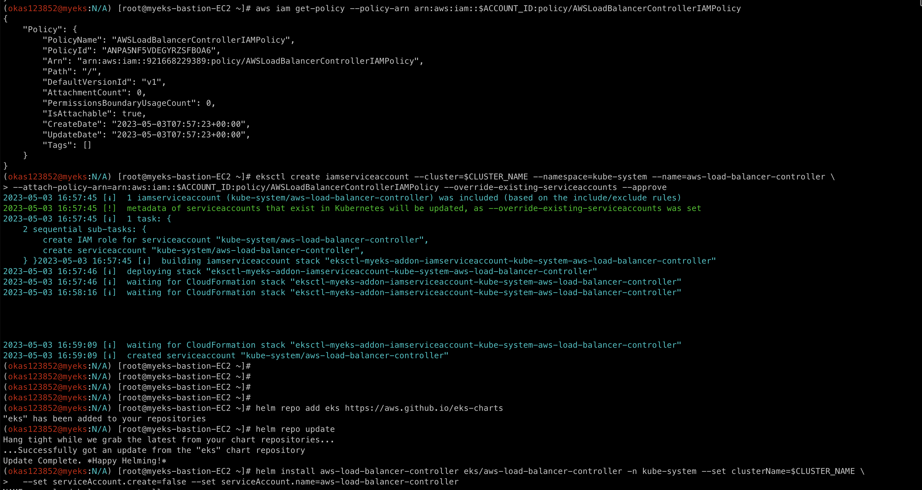 aws iam get-policy --policy-arn arn:aws:iam::$ACCOUNT_ID:policy/AWSLoadBalancerControllerIAMPolicy
