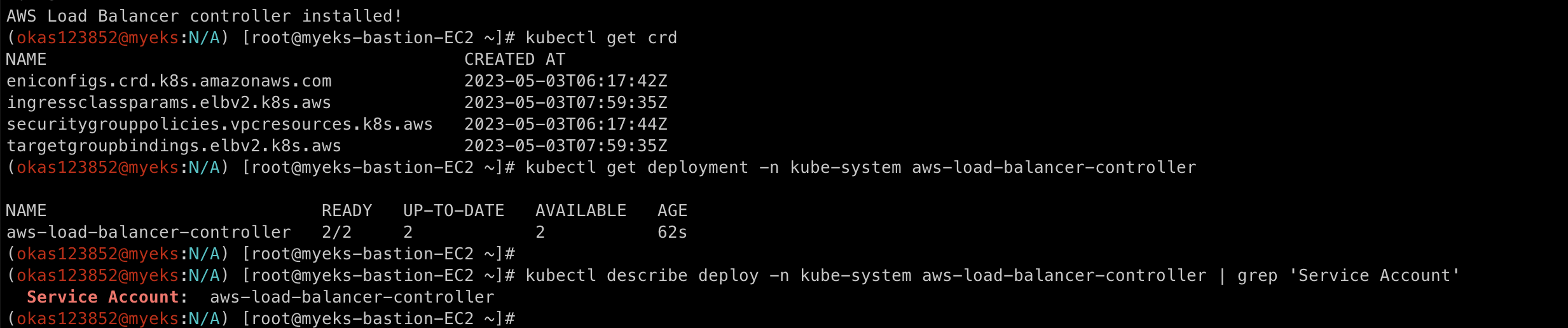 kubectl describe deploy -n kube-system aws-load-balancer-controller | grep 'Service Account'