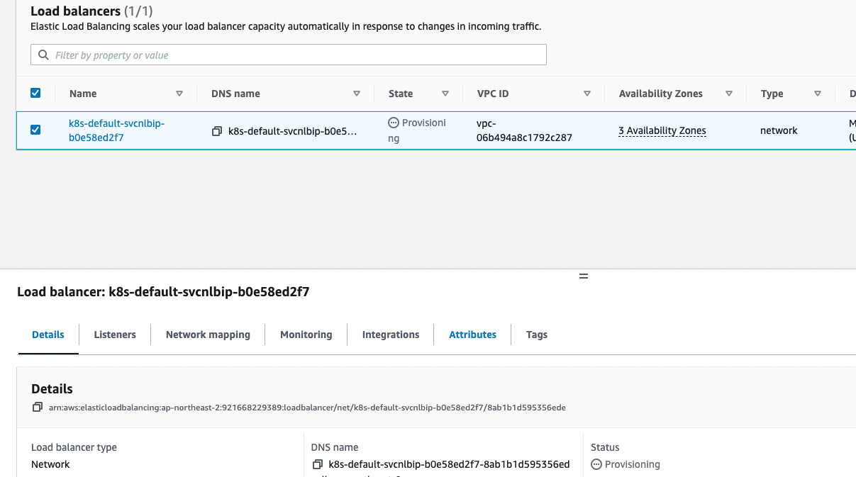 웹콘솔에 LB생성 확인