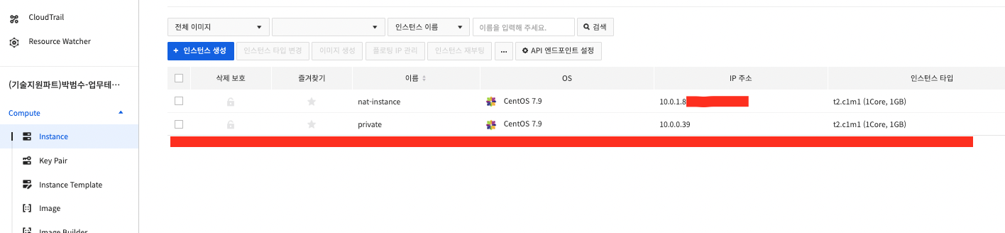 6. 인스턴스 생성 (Private 대역 / Nat 대역 각각 하나씩 ) > Nat 대역에는 Floating IP 할당