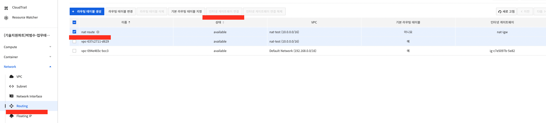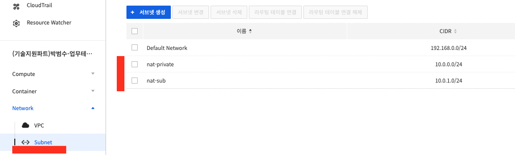 5. Nat로 사용할 서브넷 대역과 4.에서 만든 라우팅 테이블 연결