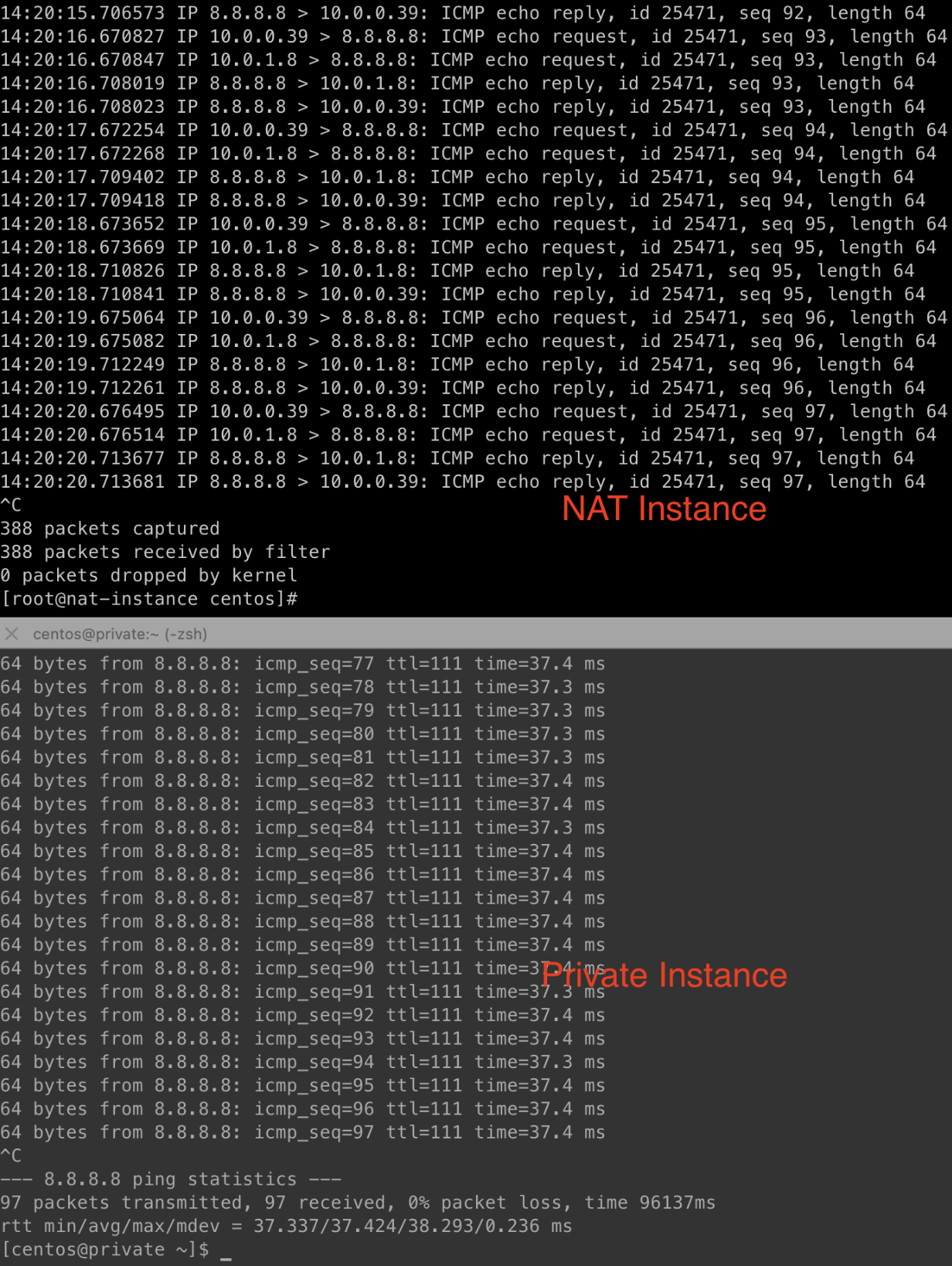 10.0.0.0 대역 : 인터넷 게이트웨이 없음 / Network > routing > 0.0.0.0/0 으로 nat-instance 설정