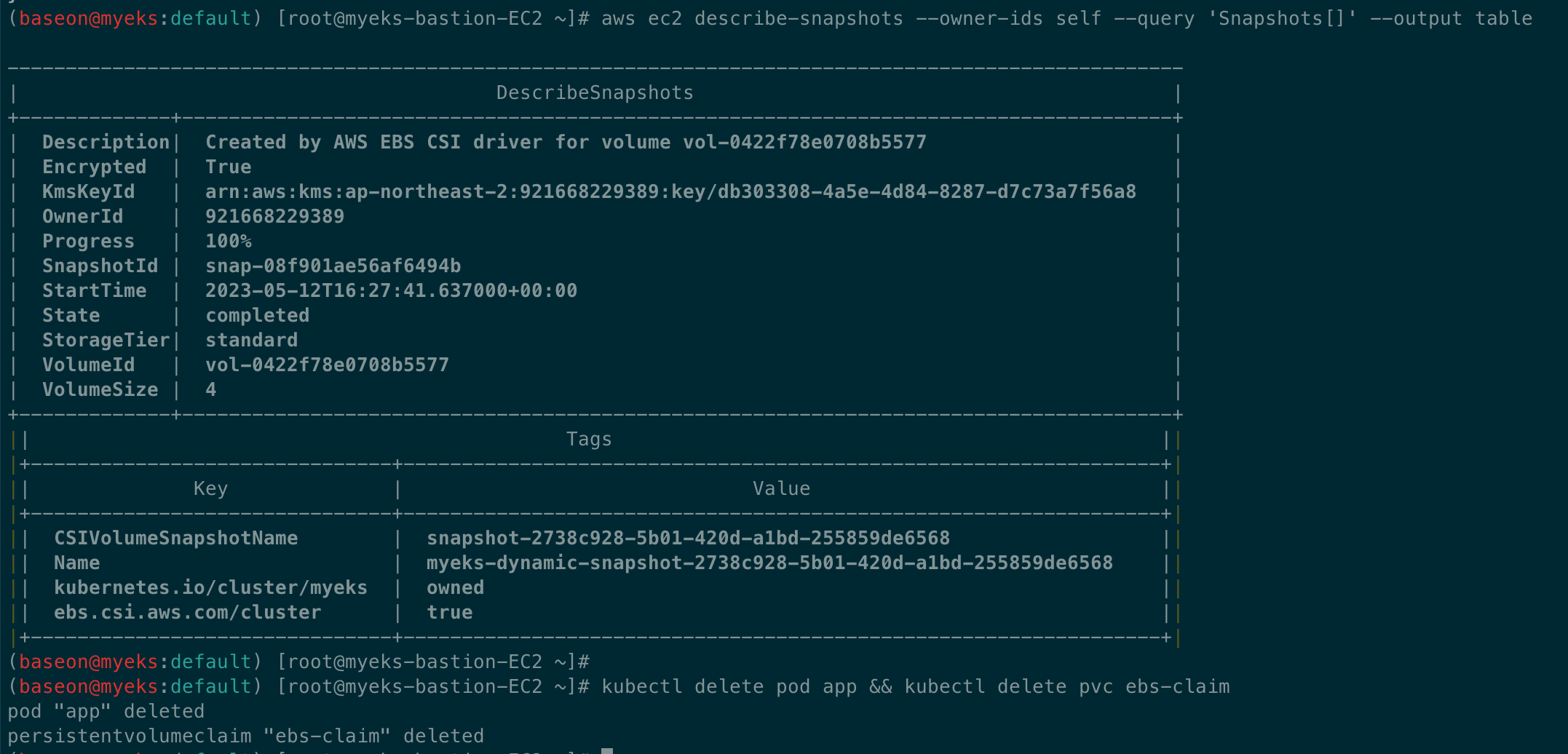 kubectl delete pod app && kubectl delete pvc ebs-snapshot-restored-claim && kubectl delete volumesnapshots ebs-volume-snapshot'클라우드 > AWS' 카테고리의 다른 글