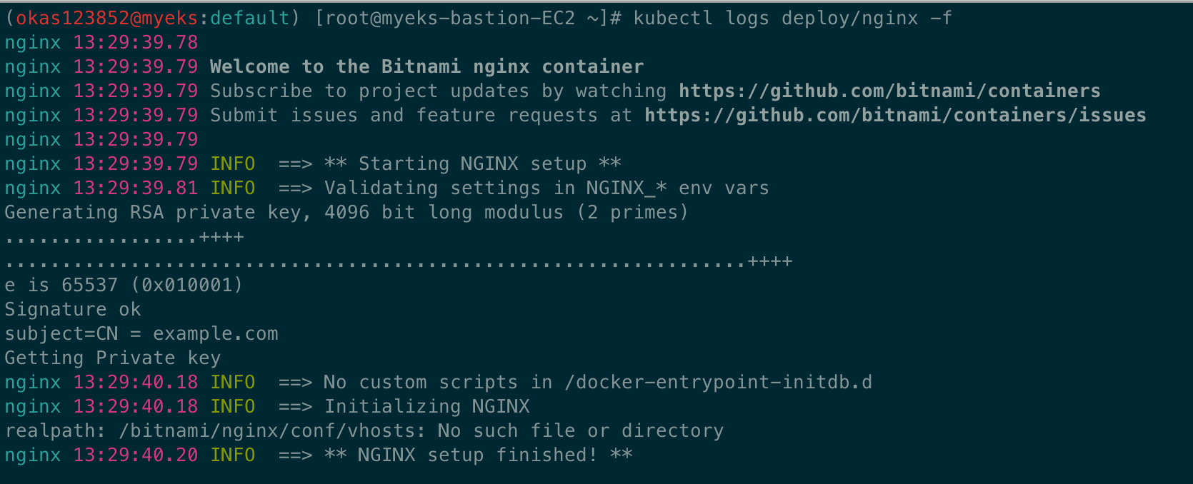 kubectl exec -it deploy/nginx -- ls -l /opt/bitnami/nginx/logs/
