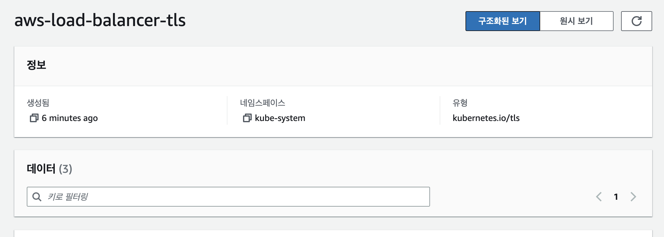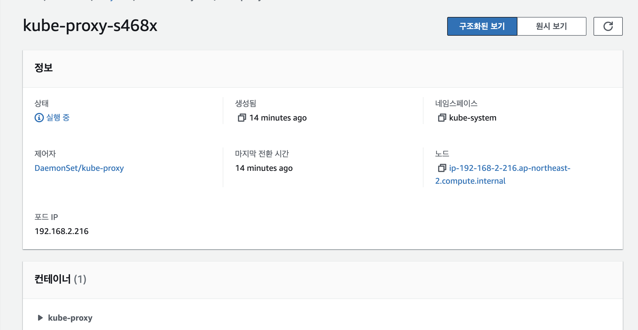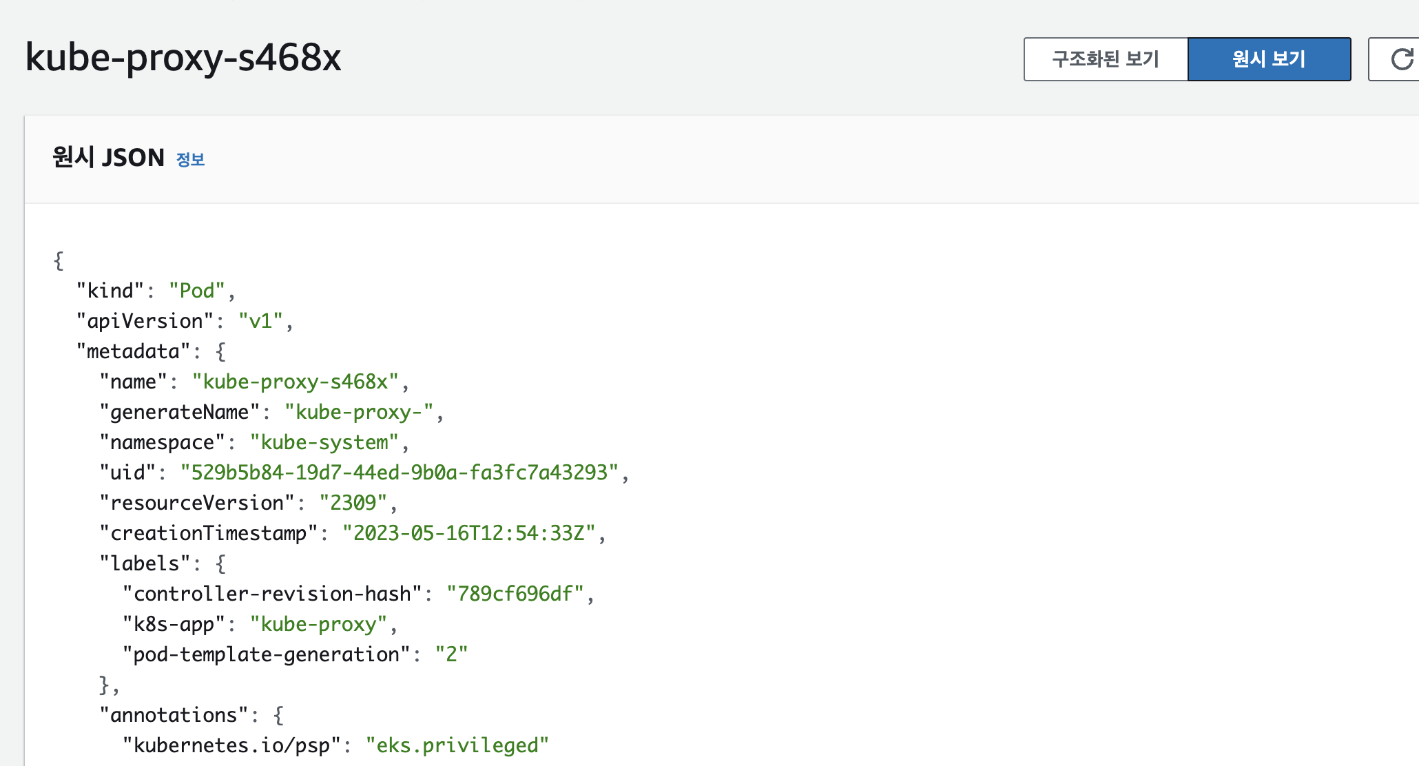 Pods : 네임스페이스 필터, 구조화된 보기 structured view vs 원시 보기 raw view