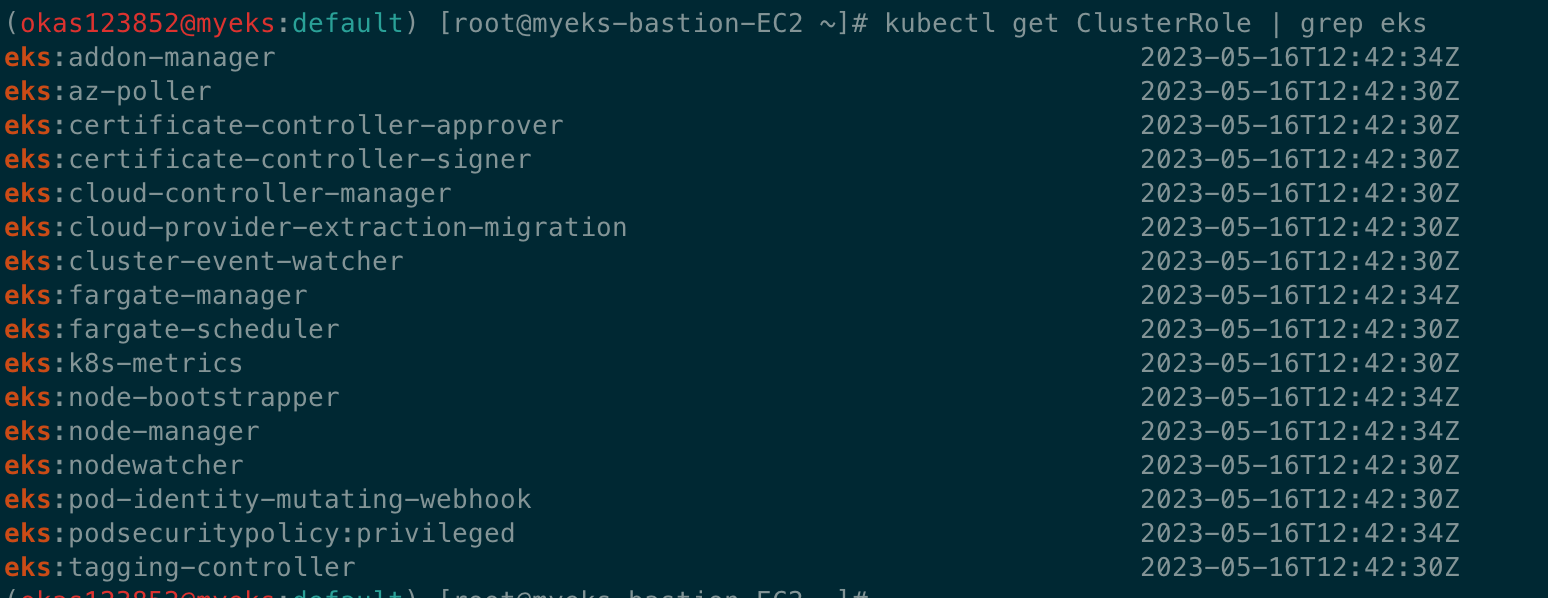 kubectl get ClusterRole | grep eks