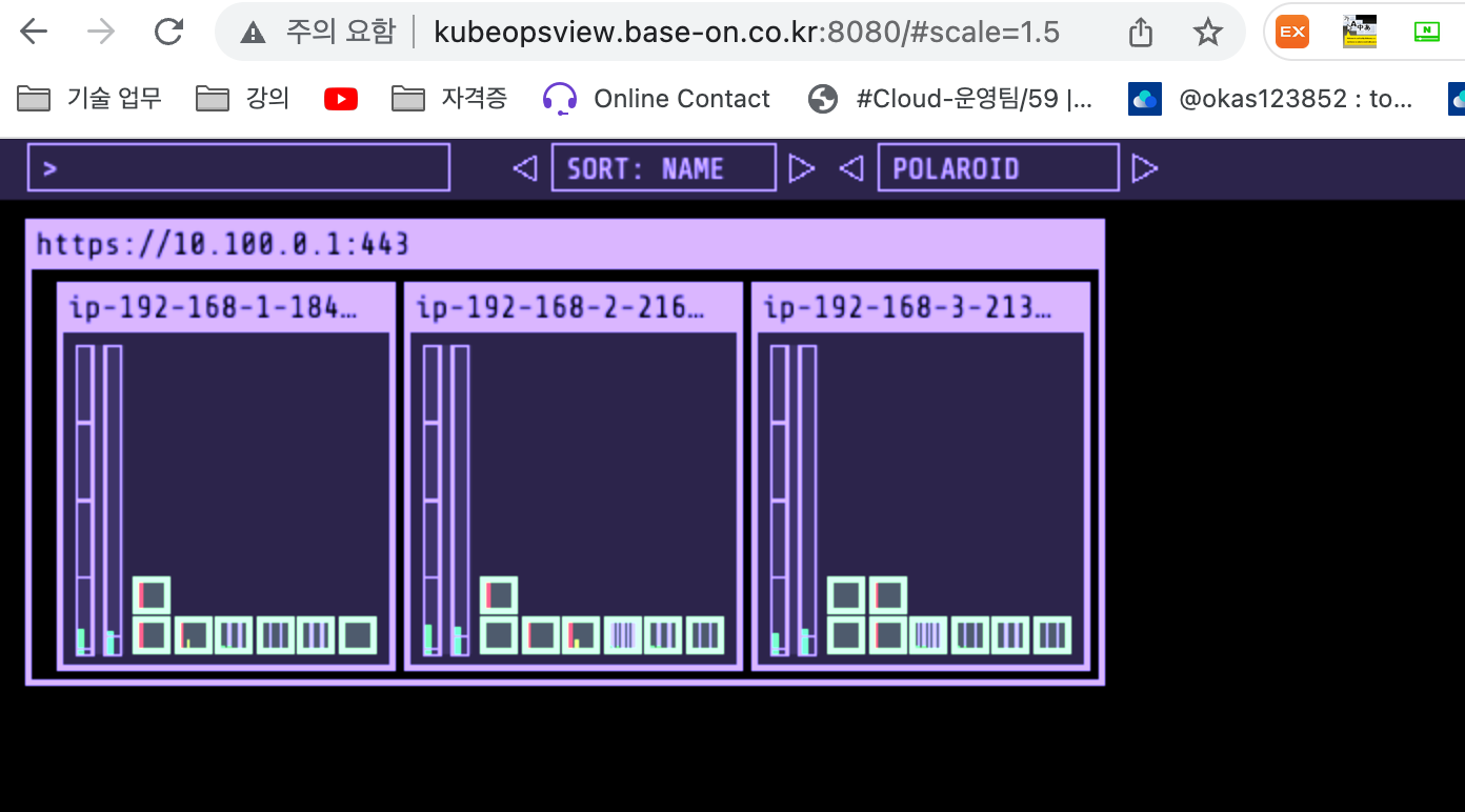 kube-ops-view는 데브옵스하신다면 켜놓고 파드가 어디에 생성되는지 시각적으로 확인하면 작업에 용이할 것 같습니다.