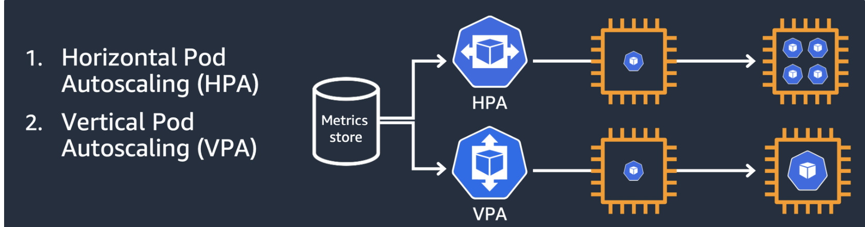 흐름도 : 메트릭 서버가 용량 수집 > 파드 최적값을 계산 >파드 삭제 > 파드 생성 > 리소스 조정