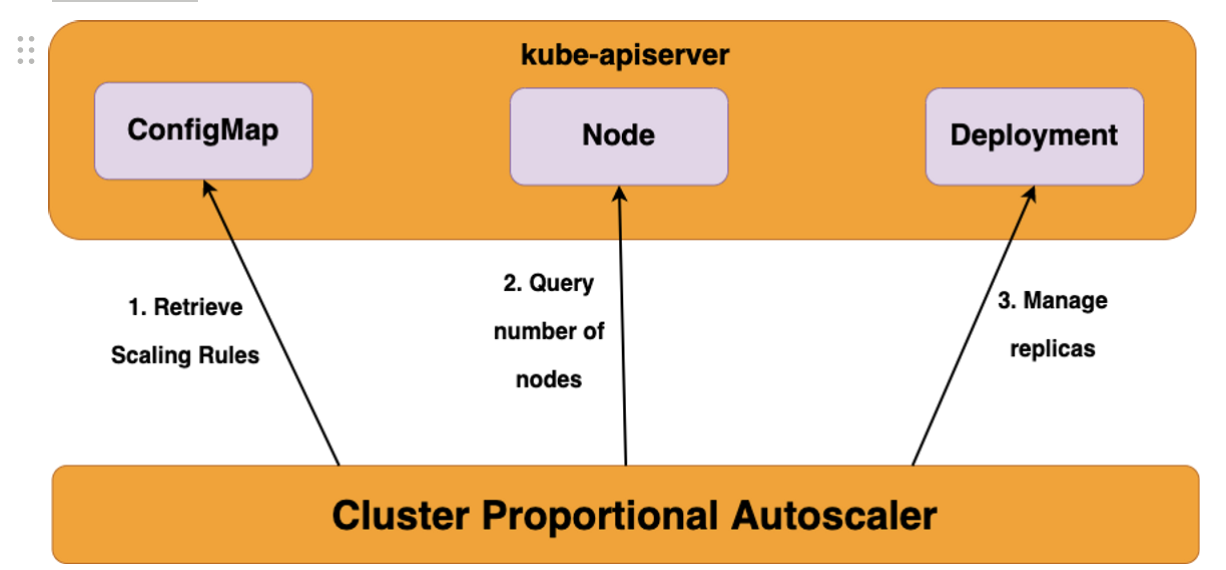 예를 들어 노드가 추가될 때마다 coredns pod개수 증가시켜, coredns부하를 줄일 수 있습니다. CPA를 사용하면 node개수가 2개일 때 coredns 1개를, node개수가 5개일 때 coredns를 3개 등을 설정할 수있습니다.