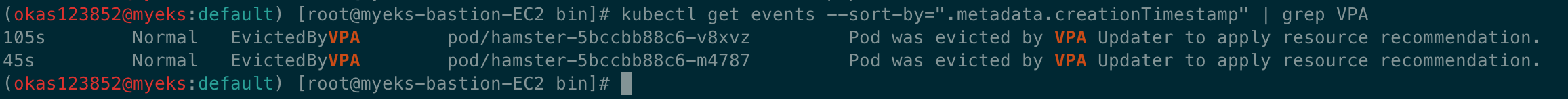 # VPA에 의해 기존 파드 삭제되고 신규 파드가 생성됨