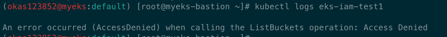 kubectl exec -it eks-iam-test3 -- aws ec2 describe-vpcs --region ap-northeast-2