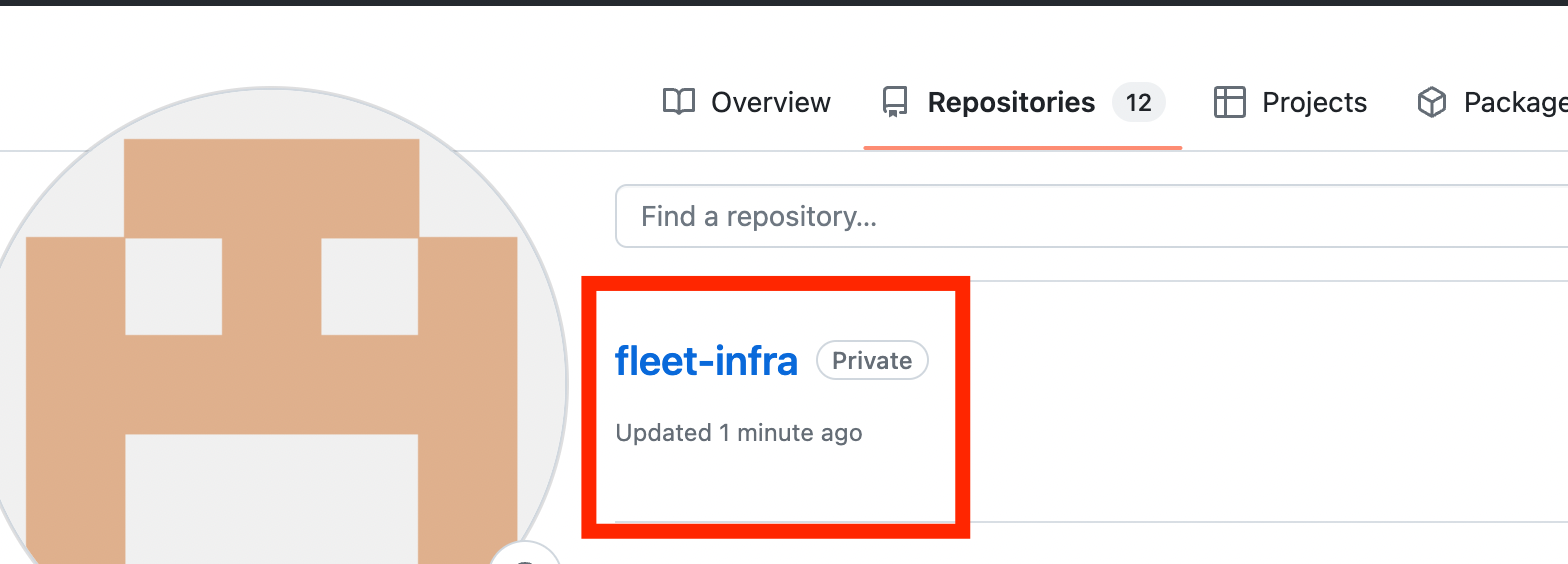 ## Creates a git repository fleet-infra on your GitHub account.